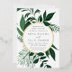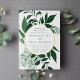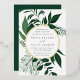 Our Wild Forest wedding invitation surrounds your wedding day details with a circular border of vibrant watercolor foliage in wintry shades of forest green. A modern yet organic choice for winter or spring weddings featuring intricately painted botanical elements.