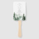Elegant Watercolor Forest Pine Tree Nature Scene, wedding program hand fan. Black and white typography with coordinating white and green background colours.