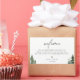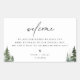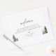 Elegant watercolor forest pine trees, wedding guest welcome bag label. Template provides lines for your message, names and event date.