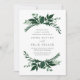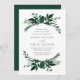 Our Wild Forest wedding invitation surrounds your wedding day details with a round border of fresh watercolor foliage in wintry shades of hunter green and forest green. A modern yet organic choice for winter or spring weddings featuring intricately painted botanical elements.