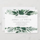 Our Wild Forest wedding invitation in a landscape format frames your wedding details with a top and bottom border of watercolor foliage in wintry shades of forest and hunter green. A modern yet organic choice for winter or spring weddings featuring intricately painted watercolor botanicals.