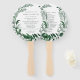 Our chic botanical wedding program fan features your ceremony details in elegant lettering, encircled by a wreath of winter watercolor foliage in rich shades of hunter green. Reverse side lists the members of your wedding party with easily editable text fields. Coordinates with our Wild Forest wedding invitation collection for chic winter or spring weddings. Use the template fields to add your ceremony and bridal party information, then reposition elements if needed.