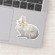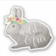 Spark the spirit of adventure or wanderlust with this boho chic woodland animal sticker. Design features a sweet grey watercolor rabbit adorned with a colourful flower crown, and the quote "wild and free" in white calligraphy script lettering.
