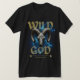 A bold and mystical design titled "Wild God", featuring a weathered ram skull crowned with thorns and framed by electric blue lightning. With its gothic font and the powerful quote, “Though it be scarred and old, the spirit of the mountains remains in its bone,” this piece evokes ancient strength and primal energy.