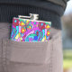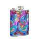 Well made flask, a little better than I had expected. Flask came in clear plastic box which gave it a nice presentation when I took it out of the zazzle packaging. Image is not printed on flask but on sticker. Don't know how this will hold up I haven't used it yet. This would make a Great gift! I plan to purchase more for friends! Cheers. I thought a little brighter than computer. Very crisp, writing wasn't