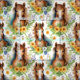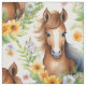 Wild Horse Flowing Mane Yellow Floral Greenery Fabric