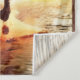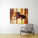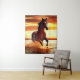 Tapestry in portrait of a beautiful wild horse galloping through the surf, against a sunset sky