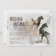 Watercolor wild horse in a vibrant colour palette of black, brown, grey, and gold accent your personalised wedding details in this horse themed wedding invitation design.