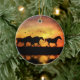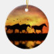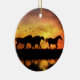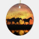 A beautiful ornament with a herd of galloping horses all silhouetted by a southwestern sunset and reflected in a pond of water.