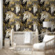 Wild Horses Gold Flowing Mane Floral Wallpaper