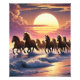 Capture the majestic beauty of nature with this stunning image of wild horses galloping along the shore at sunset. The powerful horses break the gentle waves as the golden light of the setting sun casts a warm glow across the scene. The sky is painted with rich shades of orange and gold, creating a serene yet dynamic atmosphere that captures the raw strength and freedom of the wild. Perfect for those who appreciate the untamed beauty of nature, this breathtaking scene is a true celebration of life in motion.