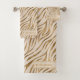 Bring a touch of luxury to your bathroom with this chic zebra print bath towel set. The design features an ivory and gold pattern accented with a sleek gold-framed label that can be personalised with your family name or monogram. Stylish and practical, add a glamourous wild side to your home décor while making everyday routines feel a little more indulgent. Perfect as a gift or for giving your own bathroom a designer upgrade. Search ID1160 to see other products with this design and additional animal print options.