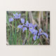 Beautiful any occasion gift. Wild purple iris flowers in full bloom, outdoor nature scene.