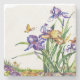From a watercolor painting of a cluster of beardless Blue Flag and Yellow Flag irises growing in the garden. Hovering above is a delicate yellow butterfly, enjoying the lovely spring flowers as much as we do.