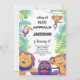 Embark on a wild adventure with this fun safari birthday invitation! Featuring adorable safari animals like giraffes, elephants, and lions surrounded by tropical greenery, this editable design is perfect for little explorers. Easily customise your child’s name, age, and event details using Zazzle’s easy-to-use tools. Ideal for jungle, safari, or wild one birthday themes.