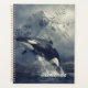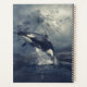 Majestic killer whale in the wild, jumping over the icy waters of a snowy landscape.