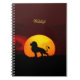 Wild lion, sunrise & calligraphy on a jungle Notebook.