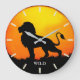 Wild lion & sunrise on a jungle large clock