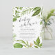 Our Wild Meadow baby shower invitation features your baby shower details in grey, framed by painted watercolor greenery in lush shades of spring green, olive and fern. A modern yet organic choice with chic calligraphy accents, for gender neutral baby showers featuring fresh green leaves and stems in Greenery, 2017's colour of the year.
