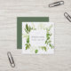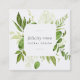 Chic botanical business cards in a unique square format feature your name or company name encircled by a round border of painted watercolor botanical leaves in rich shades of green. Add your full contact information to the back in white on forest green. A unique and elegant choice for florists, floral designers, landscape design or any business with a green or wellness focus.