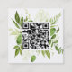Chic botanical business cards in a unique square format feature a customisable QR code surrounded by a border of painted watercolor botanical leaves in rich shades of green. Add your full contact information to the back in white on forest green. A unique and elegant choice for florists, floral designers, landscape design or any business with a green or wellness focus.