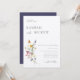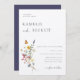 Wild Meadow Floral, Wedding Invitation. Colourful watercolor wildflower bouquet with coordinating navy blue colour backing.