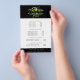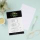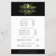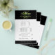 Chic botanical flyer card design displays your services, price list or business information beautifully. Design features a watercolor greenery logo in fern, forest and spring green, framing your name and/or business name against a contrasting rich black background. Includes four customisable headings and body text fields, and space for your business contact information along the bottom. To adjust layout, enter your text and then use the Customise function to change positioning and font sizes.