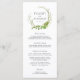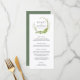 Our garden chic wedding menu features your starter courses, entrees and desserts in elegant lettering, with your names and wedding date encircled by a green botanical wreath illustration. Coordinates with our Wild Meadow wedding collection.