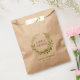 Garden chic wedding favour bags say thank you to guests in elegant spring style. Bags feature a wreath of green botanical leaves in lush shades of forest and fern green, framing your custom message (shown with "love and thanks"). Personalise with your names and wedding date beneath in elegant grey lettering. Designed to coordinate with our Wild Meadow wedding and special event collection.