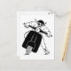 At its heart, a daring motor scooter rider leans into a corner with effortless grace, sporting an aviator hat, sunglasses, and a charming mustache. The intricate details of the rider, depicted in white with bold black lines, evoke a sense of adventure and freedom, while the solid black scooter exudes sleek sophistication. This postcard is a perfect homage to the spirit of exploration and the joy of riding.