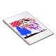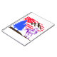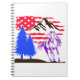Wild Mountain Horse in Purple Galloping past the mountains and beyond the forest in front of an abstract coloured American Flag.