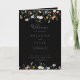 This wild multicolor floral folded black wedding program is perfect for a rustic wedding. The design features watercolor pink, blush, purple, navy and white elegant flowers with emerald green leaves in a dark background.