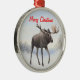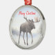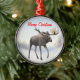 Original fine art design of a bull moose in winter by artist Carolyn McFann printed on a quality holiday ornament for wildlife fans.