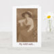 A sepia-coloured vintage photograph of a serious-looking woman wearing western style attire. The verse says, "My wild oats have turned to shredded wheat."