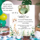 For baby's 1st birthday. A white background. a cute little baby giraffe and eucalyptus greenery, woodland ferns and balloons. Personalise and add the name and party details. Text: Wild One