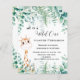 For baby's 1st birthday. A white background. a cute little baby giraffe and eucalyptus greenery and woodland ferns. Personalise and add the name and party details. Text: Wild One