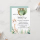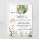 For baby's 1st birthday. A white background. a cute little baby giraffe and eucalyptus greenery, woodland ferns and balloons. Personalise and add the name and party details. Text: Wild One