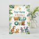 Adorable "Wild One" safari birthday invitation featuring watercolor jungle animals (lion, giraffe, elephant, zebra) with tropical leaves. Perfect for first birthday parties!