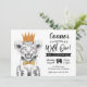 Celebrate the Wild One with a jungle theme first birthday. Invitation featuring a watercolor jungle lion cub with gold crown and bow tie