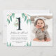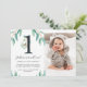 Modern and Clean Design, He's a Wild One with Botanical Watercolor Leaves and Photo Child's 1st Birthday Party Invitation.
