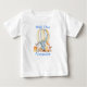 Wild One 1st Birthday Watercolor Baby Animals Hot Air Balloon Baby T-Shirt. Baby Animals include Elephant, Monkey, Giraffe, Rhino, Zebra and Lion. Blue Text. Add Name.