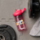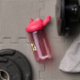 Wild One 1st Birthday Watercolor Safari Baby Animals Kid's Water Bottle. Baby Animals include Elephant, Monkey, Giraffe, Rhino, Zebra and Lion on fern leaves. Watercolor Botanical Greenery. Pink Text. Add Name.