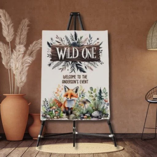 Cute wild one, baby woodland animals themed 1st birthday or Baby Shower event item for daughter, son, gender neutral in woodland colours. Design by LeahG. Graphics by Grafixdeals.com