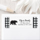 Wild one first birthday party with black bear and black buffalo plaid return address labels.