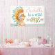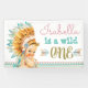 Girls wild one first birthday banner with cute blonde hair baby girl holding a dream catcher and wearing a Native American Indian outfit on a pastel Southwest Aztec Indian design background. You can add the text of your choice personalise this adorable boho tribal birthday party banner for your event.