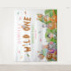Teepee tents with vibrant patterns, leafy greenery, and scattered feathers bring a whimsical and vibrant touch to the design. The bold "Wild One" theme stands out in fun, stylish fonts, making it a striking decorative element.