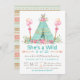 Girls wild one first birthday party invitation with rustic tribal teepee and balloons on a pretty floral and tribal arrow background. These tribal wild one first birthday party invitations are easily customised for your event by simply adding your details.