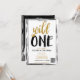 Wild One Black + Gold Photo 1 1st Birthday QR code Invitation