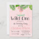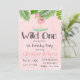 Wild One Boho Pink Flamingo Birthday Party Invitation