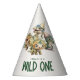 Celebrate your wild one's first birthday with our Wild One Cute Dinosaur First Birthday Party Hat! These hats coordinate perfectly with our invitation and features cute baby dinosaurs in party hats.